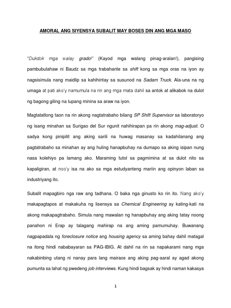 Amoral Ang Siyensya Subalit May Boses Din Ang Mga Maso