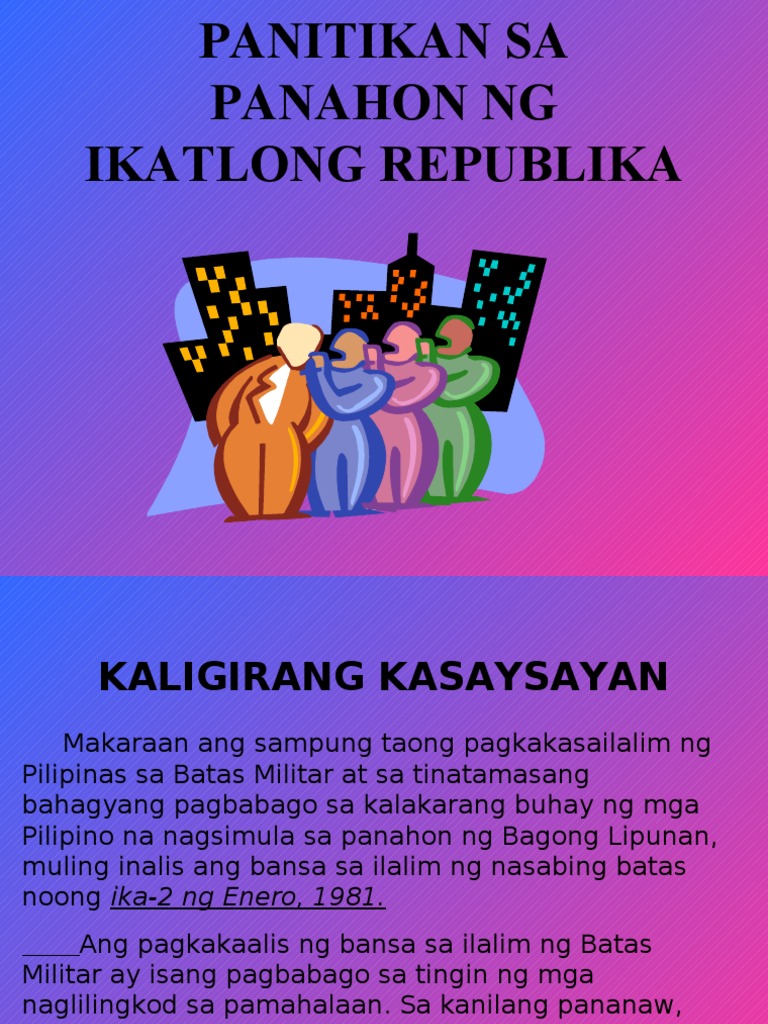 Anong mga taon sa kasaysayan ng pilipinas ang ikatlong republika. View Panahon ng Kasarinlanpptx from CTED D98 at Naga College Foundation. Ang mga sumusunod ang mga suliranin sa panahon ng Ikatlong Republika. Edukasyon sa Ilalim ng Republika ng Pilipinas 51.