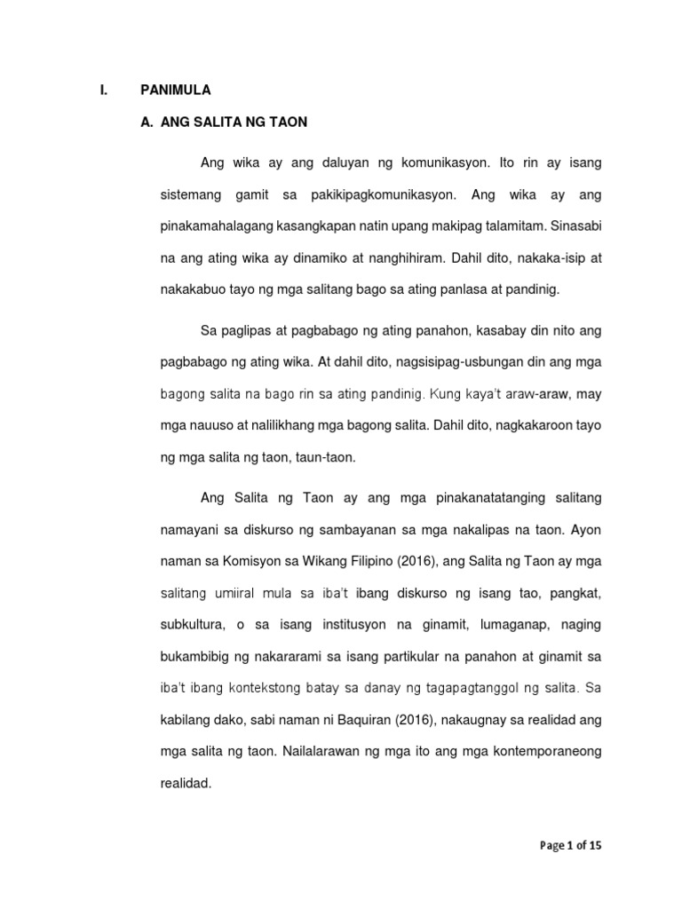 Salita Ng Taon Docx I Panimula A Salita Ng Taon Sa Paglipas Ng Maraming Taon Maraming Pagbabago Na Ang Kinaharap Ng Tao Partikular Na Sa Pamamaraan Sa Course Hero