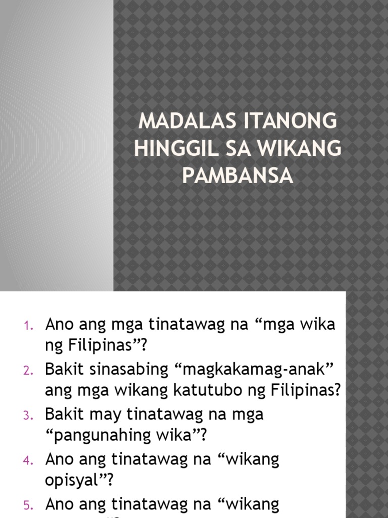 Madalas Itanong Hinggil Sa Wikang Pambansa