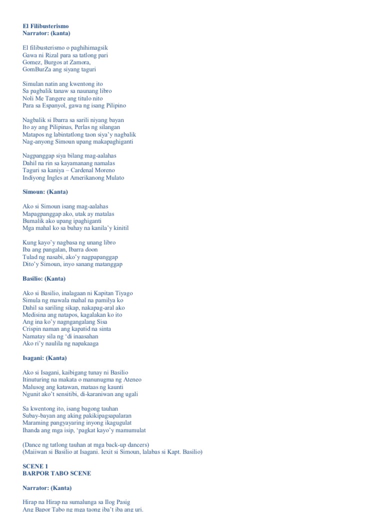Tao tao vs sarili tao vs. Buod Nagsimula ito sa isang paglalakbay ng bapor sa pagitan ng Maynila at Laguna. 1 Mga Tauhan sa El Filibusterismo Simoun Siya si Crisostomo Ibarra sa Noli Me Tangere na nagbalik makalipas ang sampung taon sa katauhan ng mag-aalahas na si Simoun.
