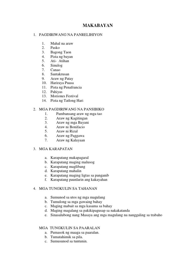 Ang pagdiriwang ng Bagong taon ay isa ring kultura na ginagawang mga Pilipino at sa ating kuwentong nabasa ay makikita rin angganitong kultura sa bansang Tsina kaya naman nais ko na ikaw aygumawa ng isang maikling kuwento na kakikitaan ng kultura ng mgaPilipino sa pagdiriwang ng bagong taon. Ang Araw ng mga Bayani ay ipinagdiriwang tuwing Agosto 26 taun-taon. Sa panahong ito ipinauunawa sa mga kristyanong alagad ngayon ang bisa ng kaniyang dugo sa bagong tipan ng Diyos sa tao at ng kaniyang hain na sakdal na katawan.