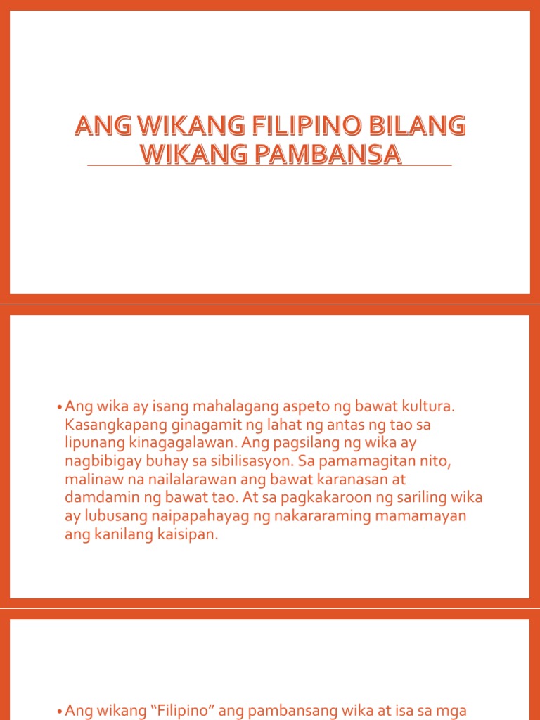 Kahalagahan ng Wikang Filipino bilang wika ng Bayan Bagaman tayo ay may kanya-kanyang wikang nakagisnan sa ibat-ibang lugar kung saan tayo namulat ngunit upang tayo ay magkaroon ng koneksyon at maayos na kumunikasyon kinakailangan nating isulong ang isang wika na magiging simbolo o instrumento ng pagkakaisa. Agta Sorsogon ng Prieto Diaz Sorsogon. Ang mga nakalimbag na akda dula o anumang palabas o panoorin at ang mga kuwentong naririnig tungkol sa ating mga Pilipino gamit ang wikang Filipino ay mas napahahalagahan dahil sa pagkakaroon ng.