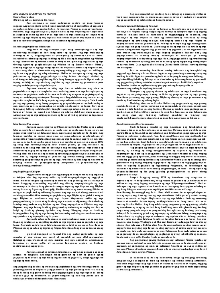 Historikal Na Pagsusuri Sa Edukasyong Pilipino